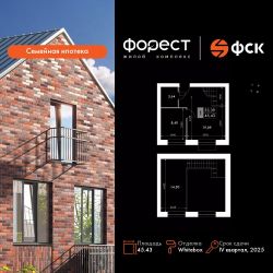 Продаётся 1-к квартира номер 43 общей площадью 45.43 кв.м. на 4-м этаже 4 этажного здания. Отделка Whitebox. Цена с учётом скидки.