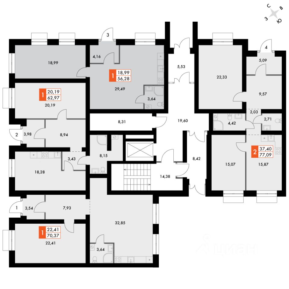 Продаётся 1-к квартира номер 65 общей площадью 56.28 кв.м. на 1-м этаже 4 этажного дома. Отделка Whitebox. Цена с учётом скидки!