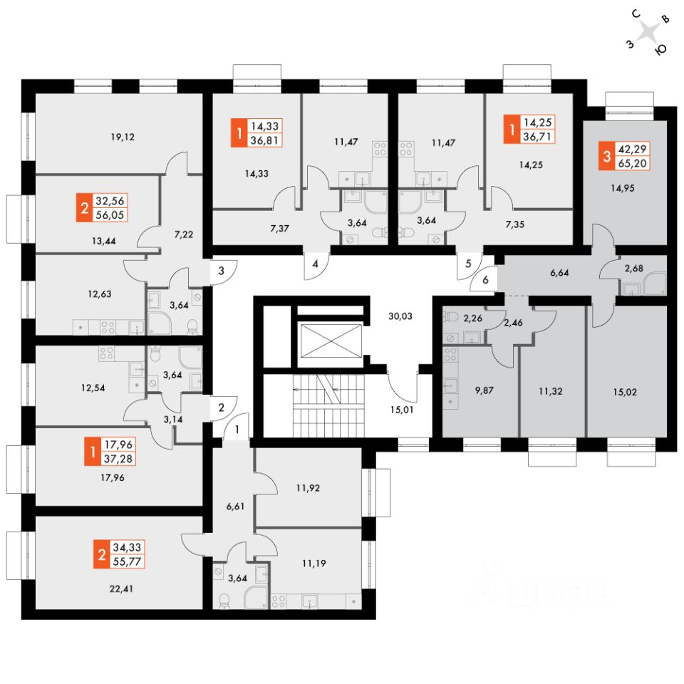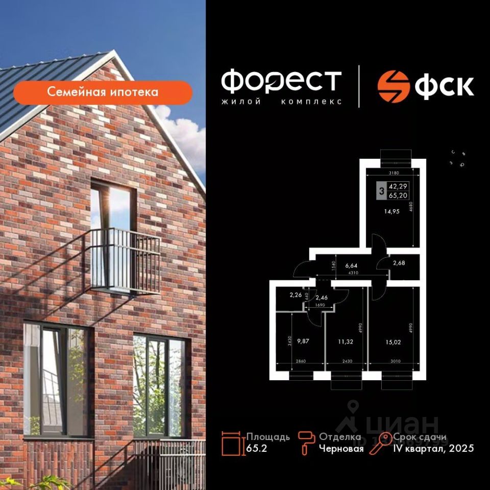 Продаётся 3-к квартира номер 78 общей площадью 65.2 кв.м. на 3-м этаже 4 этажного дома. Отделка Whitebox. Цена с учётом скидки!