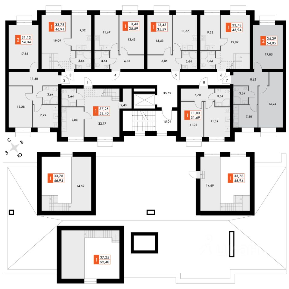 Продаётся 2-к квартира номер 112 общей площадью 54.05 кв.м. на 4-м этаже 4 этажного дома. Отделка Whitebox. Цена с учётом скидки!