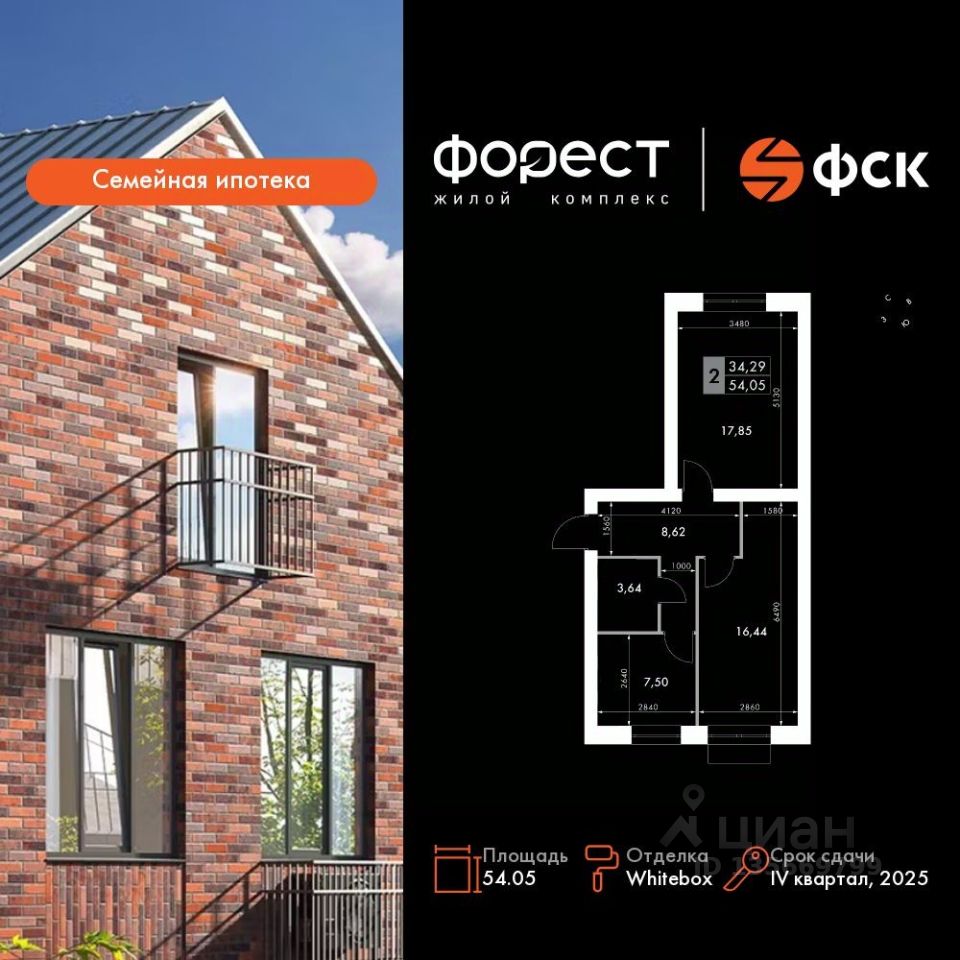 Продаётся 2-к квартира номер 112 общей площадью 54.05 кв.м. на 4-м этаже 4 этажного здания. Отделка Whitebox. Цена с учётом скидки.