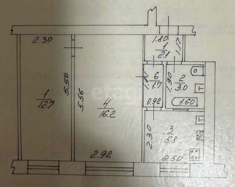 - зал 16,2 кв.м., спальня 12,7 кв.м., кухня 5,8 кв.м.;