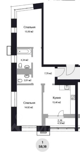 * Просторная 2-комнатная квартира (58,18 м²). Идеальная планировка для семьи или для тех, кто ценит комфорт и пространство.