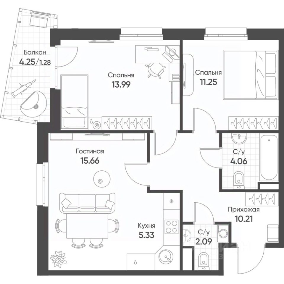 Продаётся 3-комнатная квартира в строящемся доме (Корпус 4), срок сдачи: IV-кв. 2025, общей площадью 63.9 кв.м., на 12 этаже. Новый жилой комплекс "Счастье" от застройщика "Группа Эталон" расположен по адресу город Казань, улица Гаврилова.