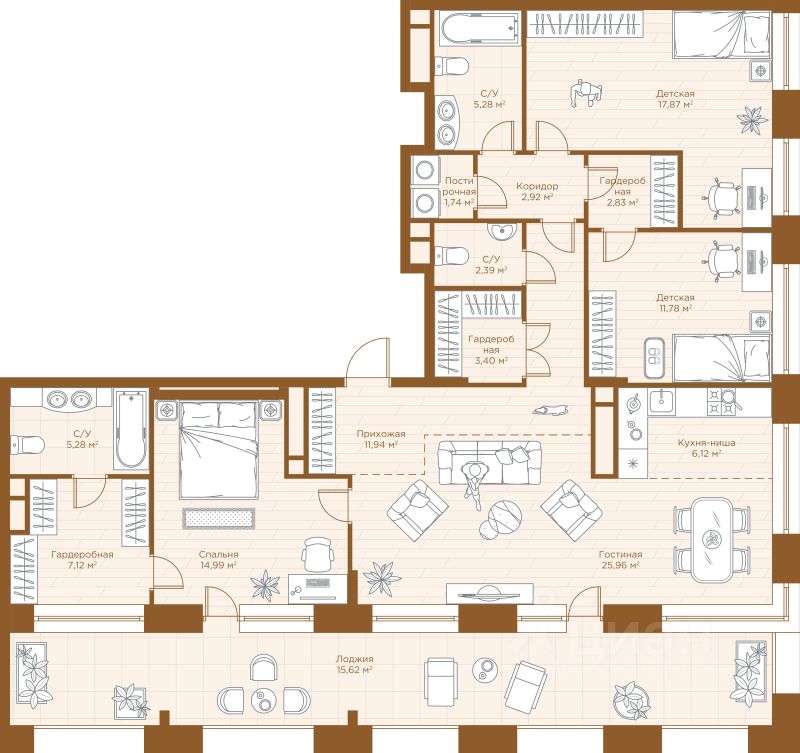 Продаётся 3-комнатная квартира в строящемся доме (Корпус 1 ), срок сдачи: IV-кв. 2025, общей площадью 135.24 кв.м., на 28 этаже. Новый жилой комплекс "SAVIN CITY" от застройщика "ГК Садовое кольцо" расположен по адресу город Казань, улица Алексея Козина.