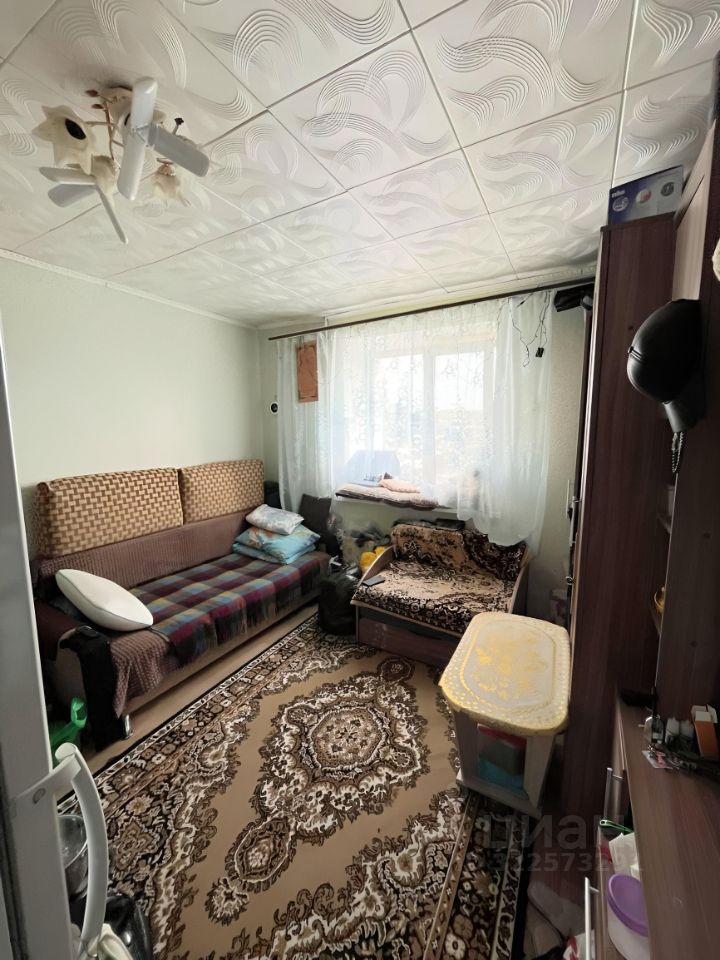 Жилая площадь — 12,8 кв.м, светлая и тёплая комната с окном-стеклопакетом и линолеумом на полу.