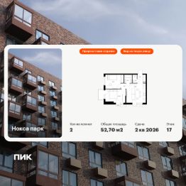 Продаётся 2-комн. квартира площадью 52,7 кв.м на 17 этаже 17 этажного дома (Корпус 10, Секция 1) проекта ПИК Нокса парк. Светлый просторный подъезд на уровне земли, функциональная планировка, большие окна, предчистовая отделка.