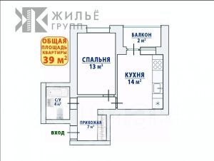 - общая площадь 37.4 м2 + балкон 2 м2