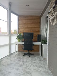 Лоджия утеплена 50-100 мм утеплителем и обшита вагонкой, стены покрашены, уложен в стяжку электрический теплый пол по всей площади лоджии, имеется возможность регулировки температуры через смартфон.