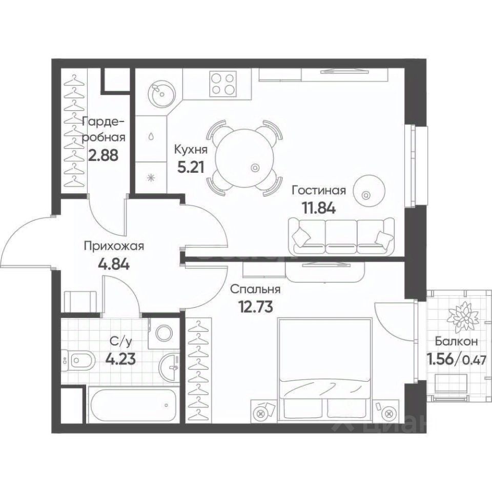 • Стильный дизайн: Современная планировка квартиры площадью 40 кв.м. с продуманным использованием каждого сантиметра пространства.