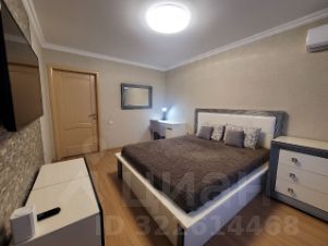 Спальня: большая кровать, тумбочки, комод, письменный стол, кресло, телевизор, кондиционер