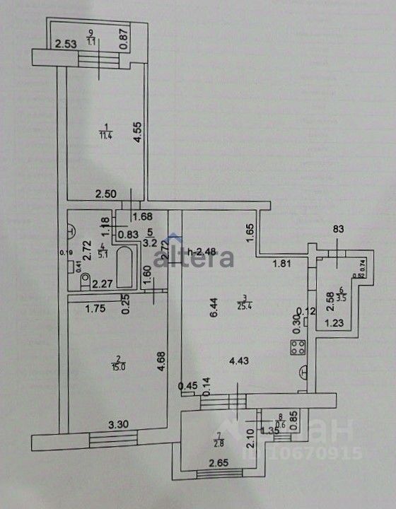 -удобная планировка: просторная кухня-гостиная 25 кв.м и 2 комнаты 15м и 11,5м