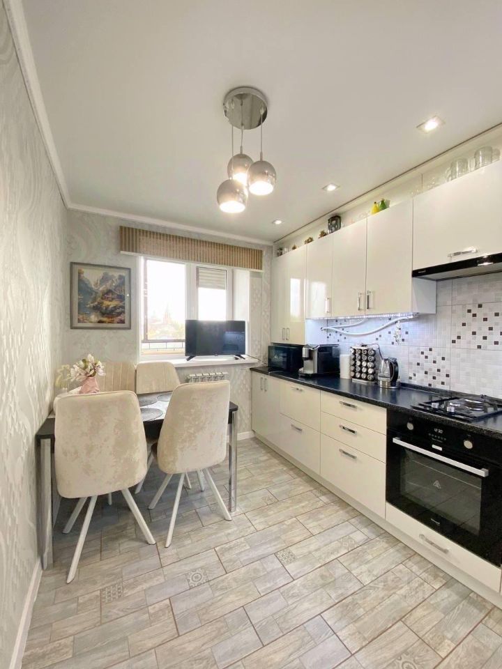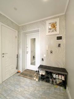 В квартире сделан хороший ремонт в светлых тонах, в зале на полу ламинат, в коридоре, санузле и на кухне плитка, а также водяные теплые полы, на стенах обои, потолки натяжные, санузел в кафеле, установлена ванная. В коридоре выделена зона гардеробной, из зала выход на лоджию. Подъезд чистый, соседи семейные, порядочные.