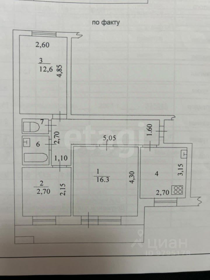 Трехкомнатная квартира площадью 61 кв. м расположена на 6 этаже кирпичного дома по улице Бондаренко, 4.