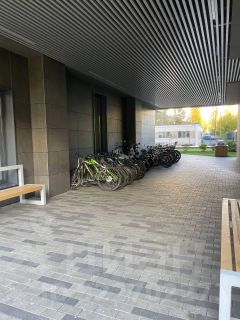 Благоустроенная придомовая территория, детская площадка, парк на крыше, в комплексе есть подземная и наземная парковочные зоны.
