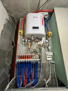 нагревательный котел, система безопасносит протечки воды теплый пол входная зона ванная тулает и балкон.