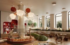 В проекте предусмотрен дизайнерский гастродворик овальной формы. В нем разместятся кофейни с уличными столиками, кондитерская, фреш-маркет, флористический салон, студия фитнеса, модные рестораны и молодые, яркие бренды, уже успевшие влюбить в себя самых стильных.