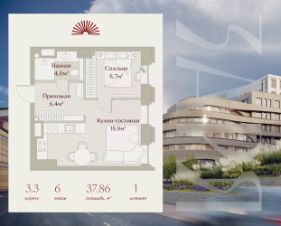 Продается 1-комнатная квартира на 6 этаже в ЖК Заря в центре города.