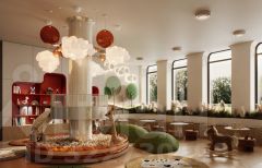 Украшением приватной внутренней территории комплекса станет просторный двор-сад и уникальные детские площадки. В гранд-лобби для детей младшего школьного возраста и подростков предусмотрен кабинет для онлайн-занятий и работы с репетиторами, а также зона для отдыха, где можно посмотреть фильм или поиграть в игры.