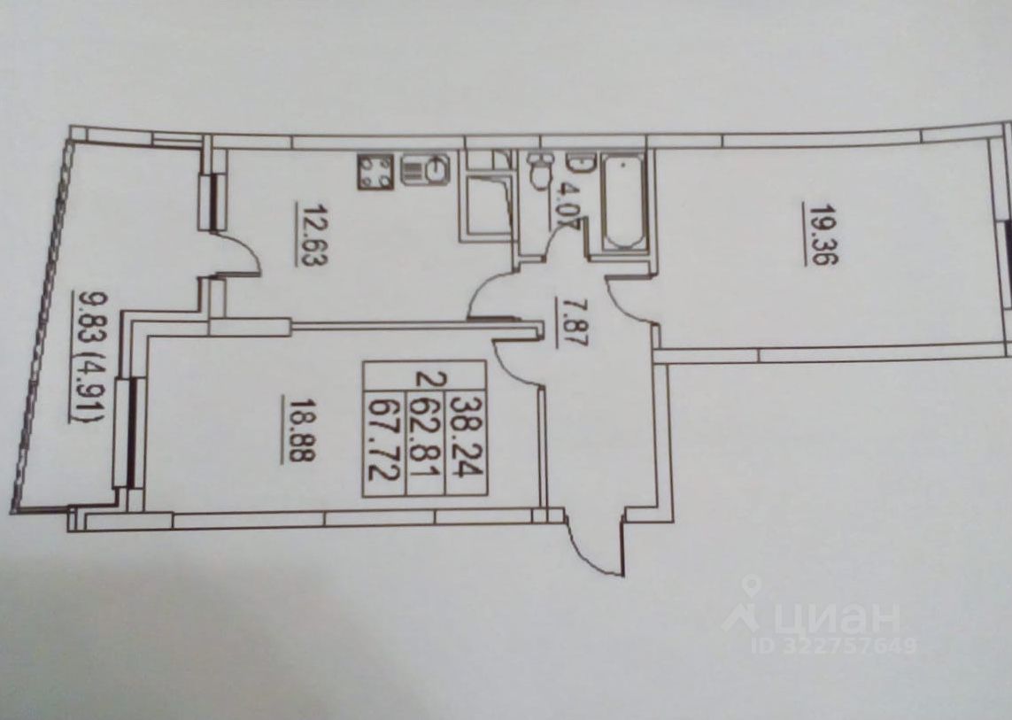 — 2 изолированные комнаты по 19 м2 каждая.