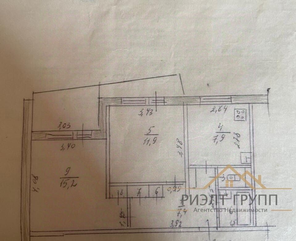 Общей площадью :47.4 кв.м ,кухня 7.9 кв.м