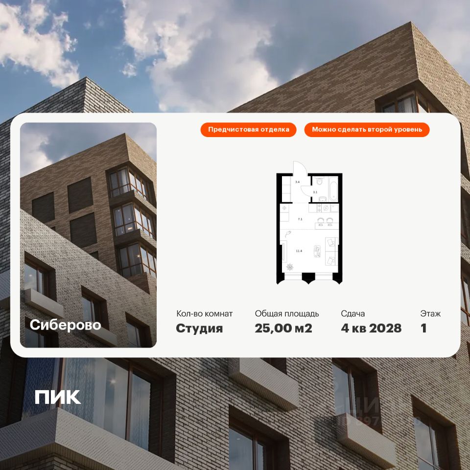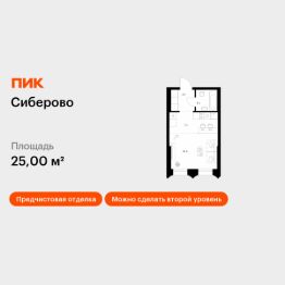 Продаётся квартира-студия площадью 25 кв.м на 1 этаже 26 этажного дома (Корпус 3, Секция 3) проекта ПИК Сиберово. Светлый просторный подъезд на уровне земли, функциональная планировка, большие окна, предчистовая отделка.
