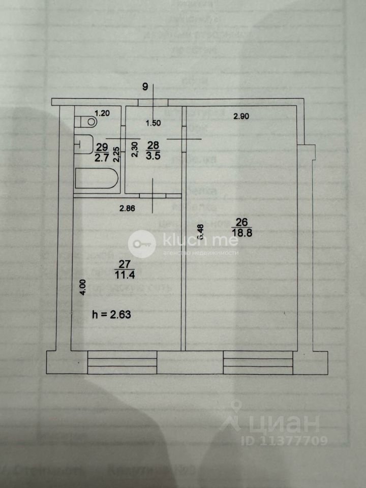 Квартира расположена на втором этаже трёхэтажного дома 1983 года постройки. Общая площадь — 36,4 кв. м, жилая — 18,8 кв. м, площадь кухни — 11,4 кв. м. Высота потолков — 2,7 м.