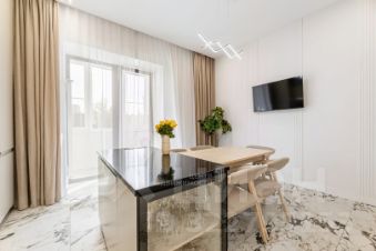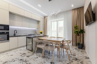Продуманная комплектация: В квартире есть все для жизни "под ключ": теплые полы на кухне и в прихожей, стиральная машина, современная встроенная техника. Для вашего удобства на кухне установлен измельчитель пищевых отходов, а на острове есть встроенные розетки.