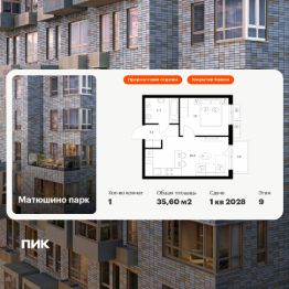 Продаётся 1-комн. квартира площадью 35,6 кв.м на 9 этаже 9 этажного дома (Корпус 4, Секция 1) проекта ПИК Матюшино парк. Светлый просторный подъезд на уровне земли, функциональная планировка, большие окна, предчистовая отделка.