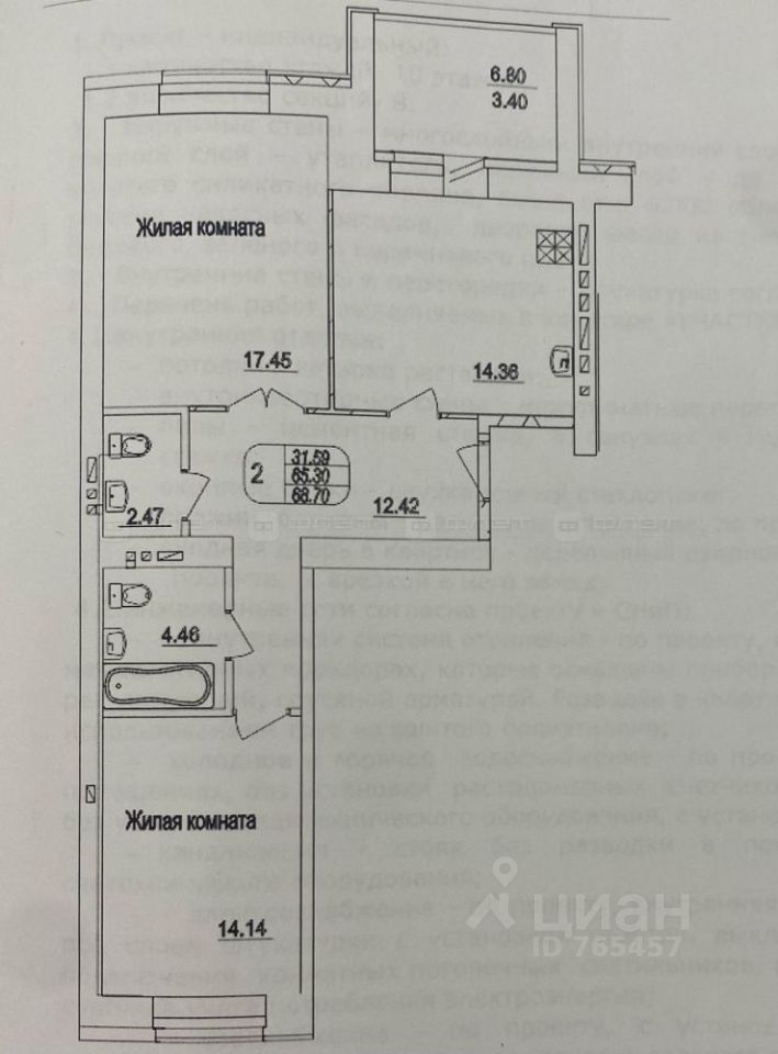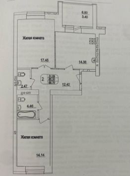 —общая площадь 68,7кв.м., жилая 31,59 кв.м, кухня 14,36 кв.м.