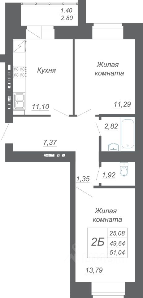 Продаётся 2 комнатная квартира 12 — 51.04 кв. м. Расположена на 4 этаже. Дом построен из силикатного кирпича.