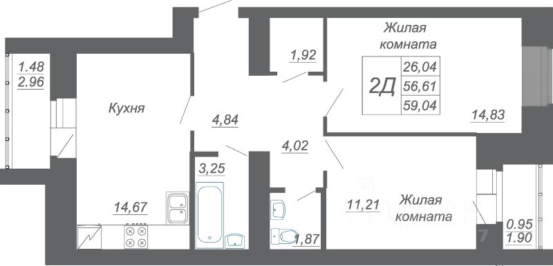 Продаётся 2 комнатная квартира 62 — 59.04 кв. м. Расположена на 4 этаже. Дом построен из силикатного кирпича.