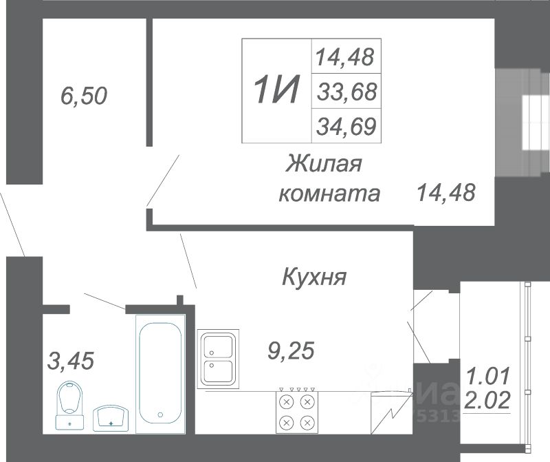 Продаётся 1 комнатная квартира 104 — 34.69 кв. м. Расположена на 2 этаже. Дом построен из силикатного кирпича.