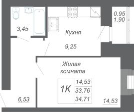 Продаётся 1 комнатная квартира 128 — 34.71 кв. м. Расположена на 7 этаже. Дом построен из силикатного кирпича.