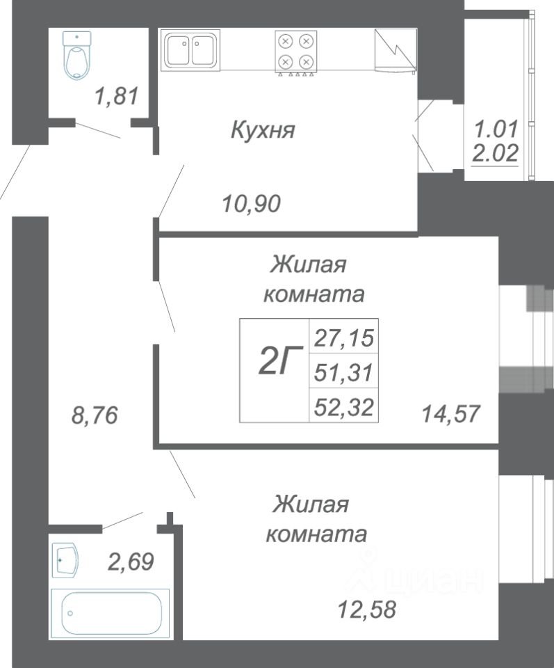 Продаётся 2 комнатная квартира 135 — 52.32 кв. м. Расположена на 8 этаже. Дом построен из силикатного кирпича.