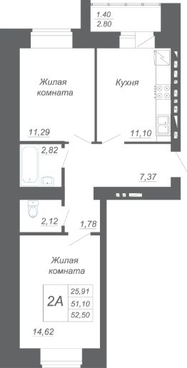 Продаётся 2 комнатная квартира 245 — 52.5 кв. м. Расположена на 10 этаже. Дом построен из силикатного кирпича.