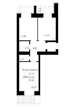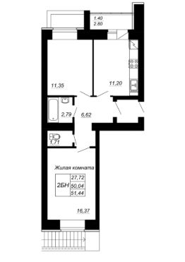 Продаётся 2 комнатная квартира 189 — 51.44 кв. м. Расположена на 1 этаже. Дом построен из силикатного кирпича.