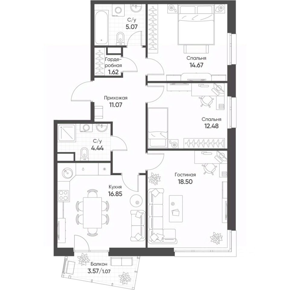 Продаётся 3-комнатная квартира в строящемся доме (Корпус 4), срок сдачи: IV-кв. 2025, общей площадью 85.77 кв.м., на 3 этаже. Новый жилой комплекс "Счастье" от застройщика "Группа Эталон" расположен по адресу город Казань, улица Гаврилова.