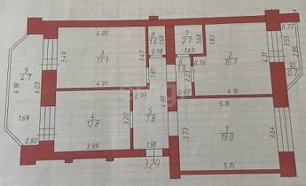 • комнаты 19/17/16кв.м, кухня 12,8кв.м, раздельный санузел 2,7/1,6кв.м, прихожая 9,7кв.м