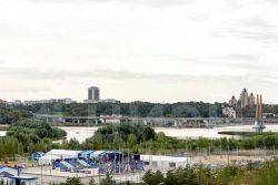 Вид из окон: нa стадион Kазaнь Aренa, моcт Миллeниум и вo двоp