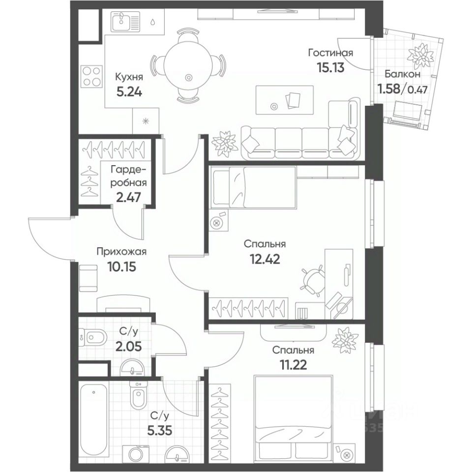 Продаётся 3-комнатная квартира в строящемся доме (Корпус 4), срок сдачи: IV-кв. 2025, общей площадью 64.5 кв.м., на 15 этаже. Новый жилой комплекс "Счастье" от застройщика "Группа Эталон" расположен по адресу город Казань, улица Гаврилова.