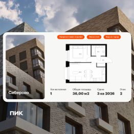 Продаётся 1-комн. квартира площадью 36 кв.м на 2 этаже 10 этажного дома (Корпус 2, Секция 9) проекта ПИК Сиберово. Светлый просторный подъезд на уровне земли, функциональная планировка, большие окна, предчистовая отделка.