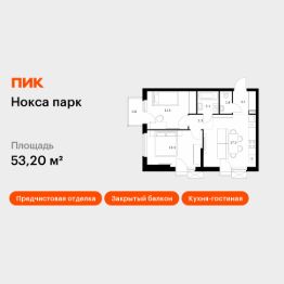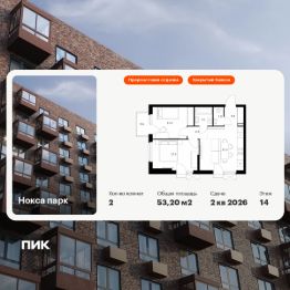 Продаётся 2-комн. квартира площадью 53,2 кв.м на 14 этаже 17 этажного дома (Корпус 9, Секция 1) проекта ПИК Нокса парк. Светлый просторный подъезд на уровне земли, функциональная планировка, большие окна, предчистовая отделка.