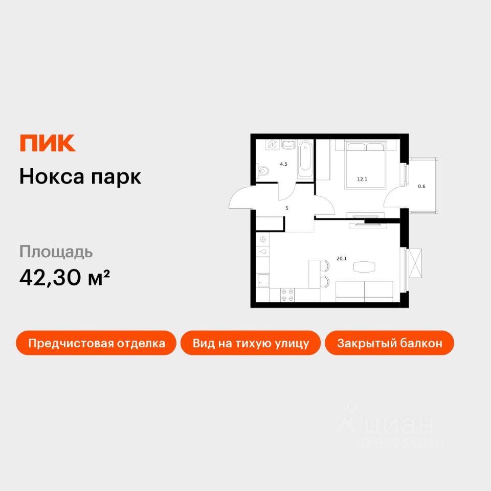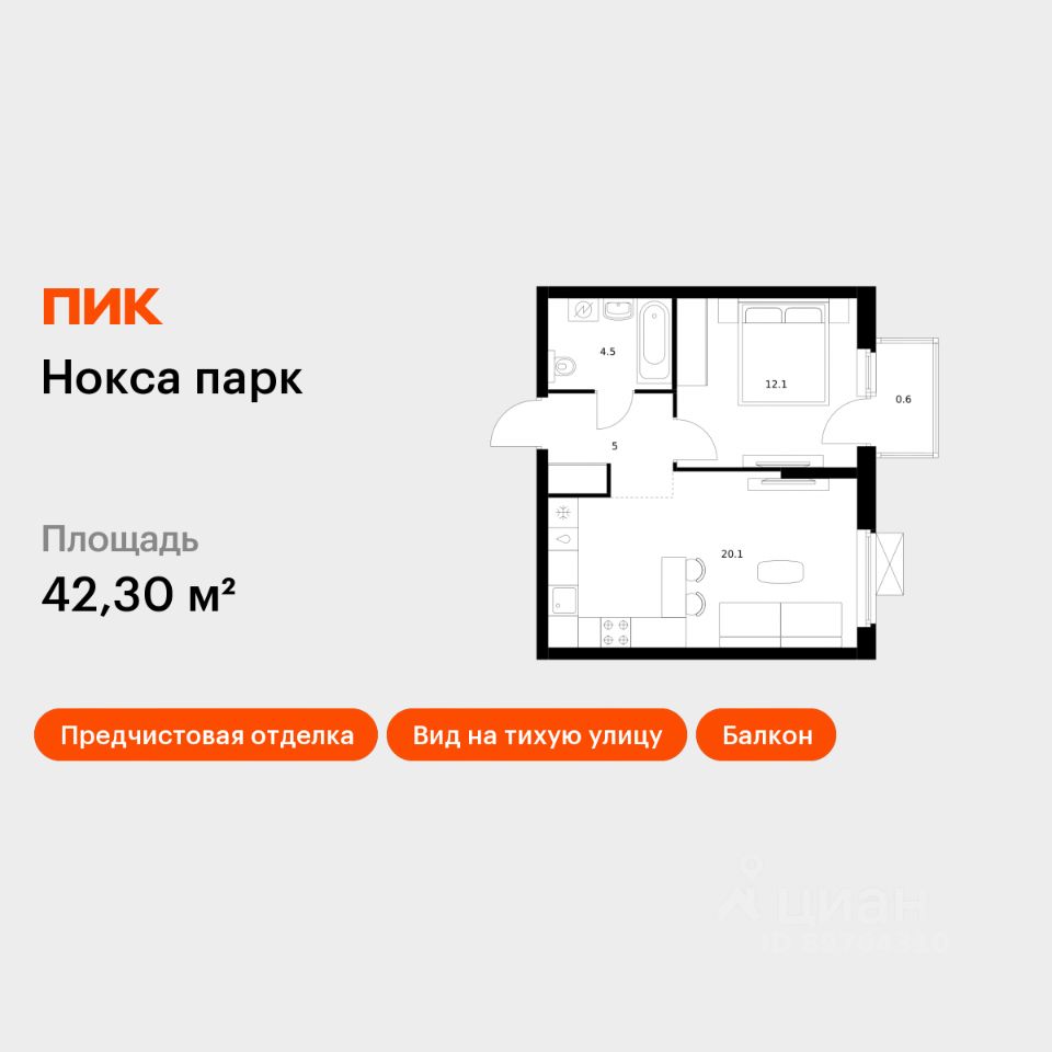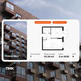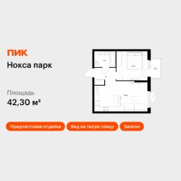 Продаётся 1-комн. квартира площадью 42,3 кв.м на 8 этаже 17 этажного дома (Корпус 9, Секция 1) проекта ПИК Нокса парк. Светлый просторный подъезд на уровне земли, функциональная планировка, большие окна, предчистовая отделка.