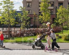 Из каждого дома будет выход в уютный двор-парк: это закрытая территория для отдыха, где растут цветы и деревья, есть зона для спокойного отдыха, детские и спортивные площадки. Здесь можно читать книгу на скамейке, заниматься йогой и найти ещё десятки интересных занятий для взрослых и детей. Также в жилом квартале будет пешеходный бульвар, по которому приятно гулять или кататься на велосипеде, роликах, скейтборде.