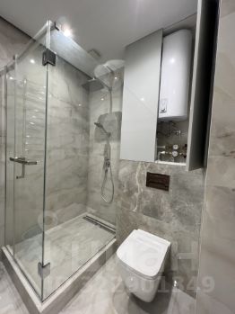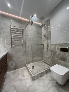 Просторная ванная комната с подогревом полов, зона душевой также с подогревом.