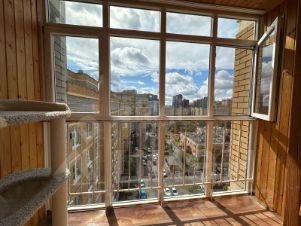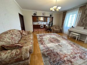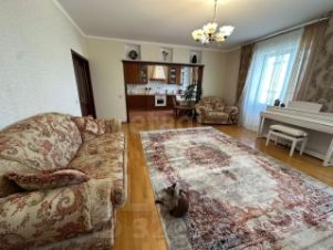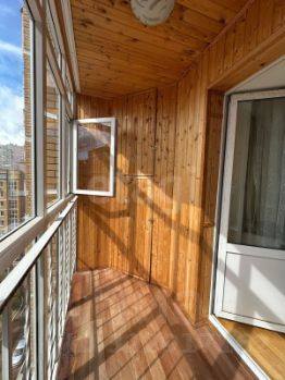 В просторной трехкомнатной квартире выполнен качественный ремонт. Пол выложен красивой качественной паркетной доской. Мебель, изготовленная исключительно из натурального дерева сосны, подчёркивает натуральность и экологичность обстановки.