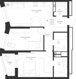 Продается 2 Евро-комнатная квартира 122 площадью 67,43 кв.м на 12 этаже в строящемся проекта "Мой Ритм" компании "Ак Барс Дом".