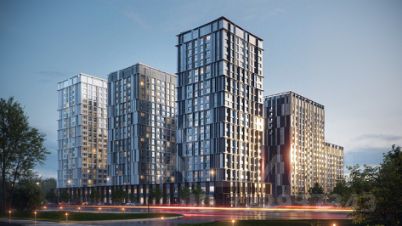 Современный жилой комплекс на пр. Победы рядом с Вознесенским трактом, торговым центром Мега и станцией метро на территории.