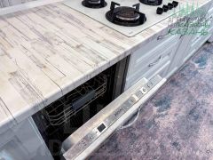 В квартире остаётся кухонный гарнитур остаётся — встроенная техника Haier: газовая варочная панель, духовой шкаф, посудомоечная машина, вытяжка.